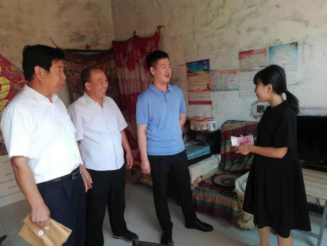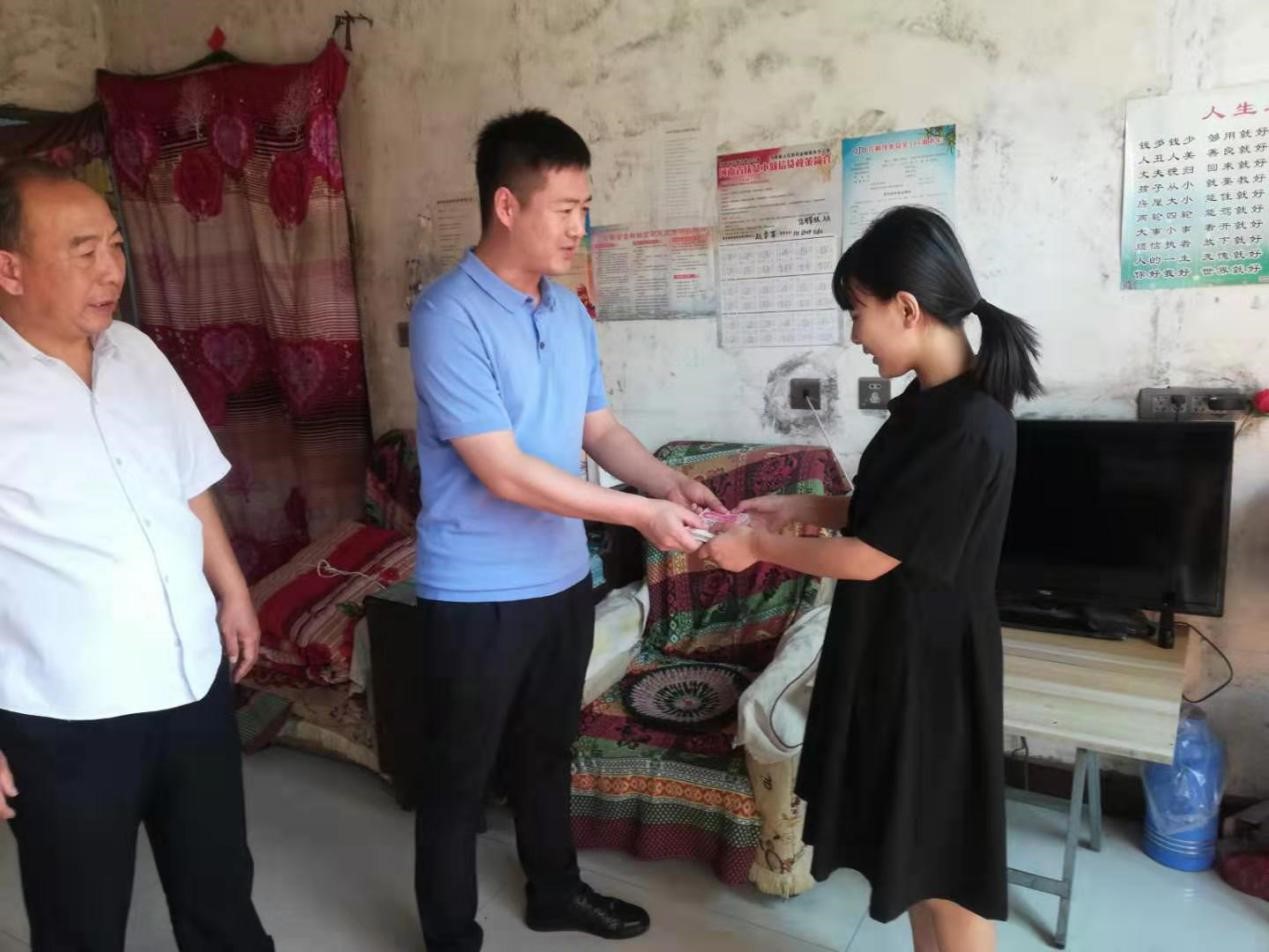 金秋將至,又是莘莘學子收獲的季節,為進一步弘揚重視教育、尊重知識、鼓勵成才的社會風氣,幫助貧困大學生順利進入大學校園。 8月31日,公司總經理助理曲笑輝,工會主席路建存在申村黨支部書記郭慶法的陪同下,深入申村貧困家庭郭亭于家中,將8000元助學金送到利用高考結束的空閑時間剛剛打工回來的郭亭于手中。