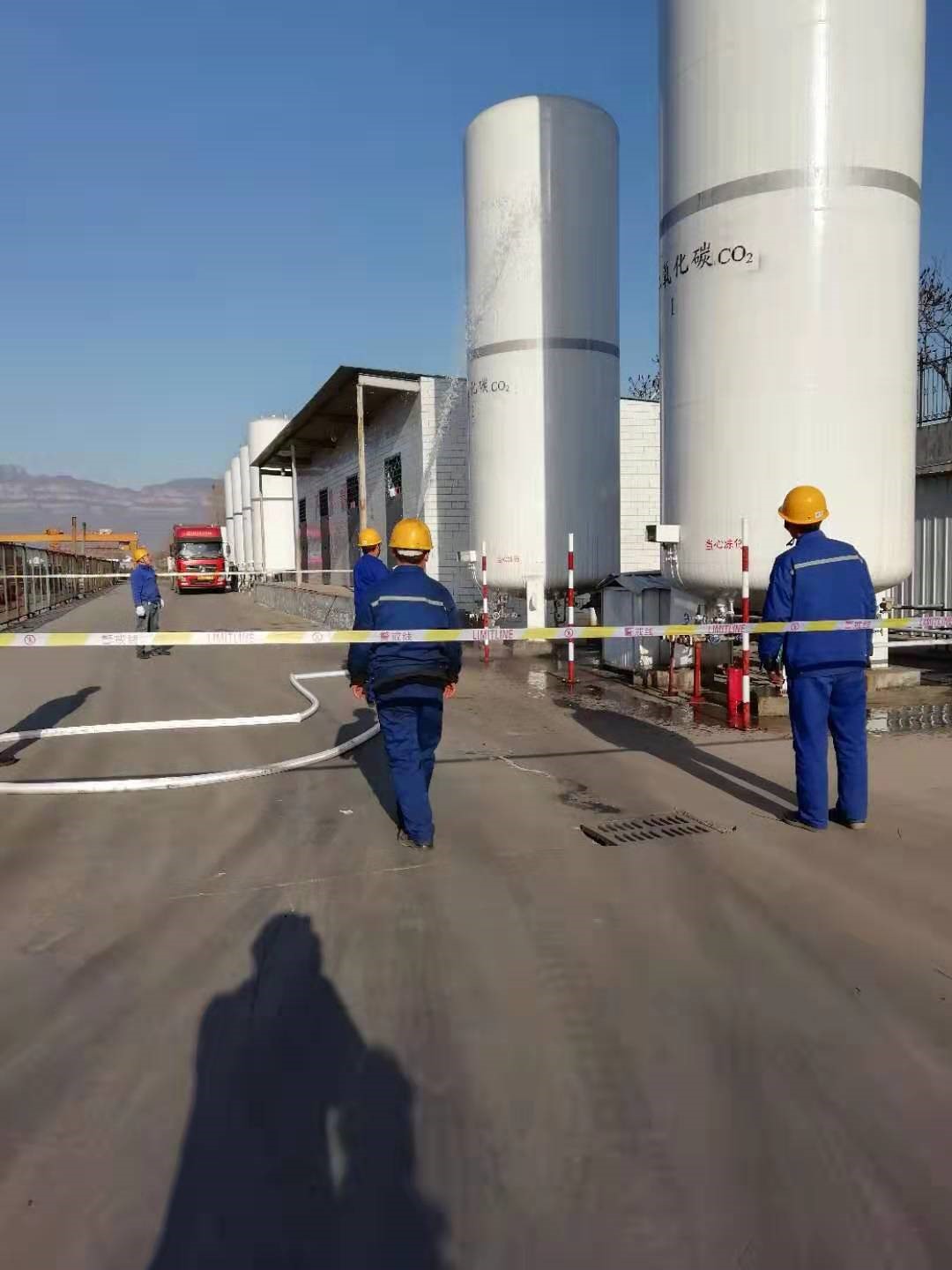 3月14日上午,在模擬現場,公司制氧站值班人員發現,二氧化碳容器罐頂溫度過高,容器隨時會發生異?,F象,立即報告安全生產部并通知了動力設備部有關人員。安全生產部、動力設備部在接到制氧站電話通知后,有關人員迅速趕到制氧站現場,并在事故現場設立了警戒區,維修人員用消防水帶對二氧化碳壓力容器頂部進行水冷卻,隨著消防水的噴射,二氧化碳頂部溫度逐步降落,回到了規定的安全范圍,及時消除了安全隱患。